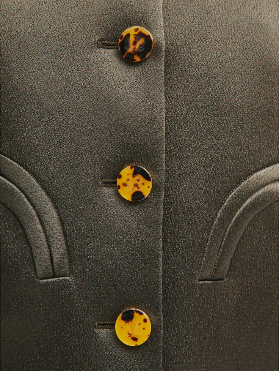 • Tortoiseshell-effect buttons with engraved logo and brass base