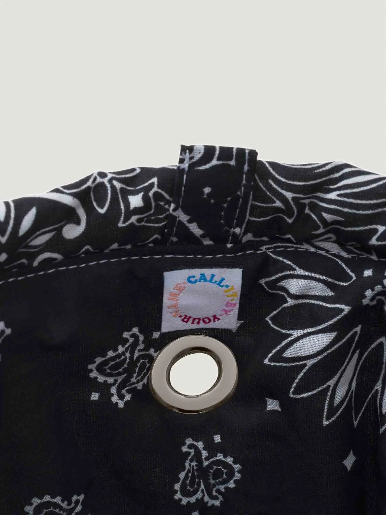 Press button to close. Bandana inner lining.