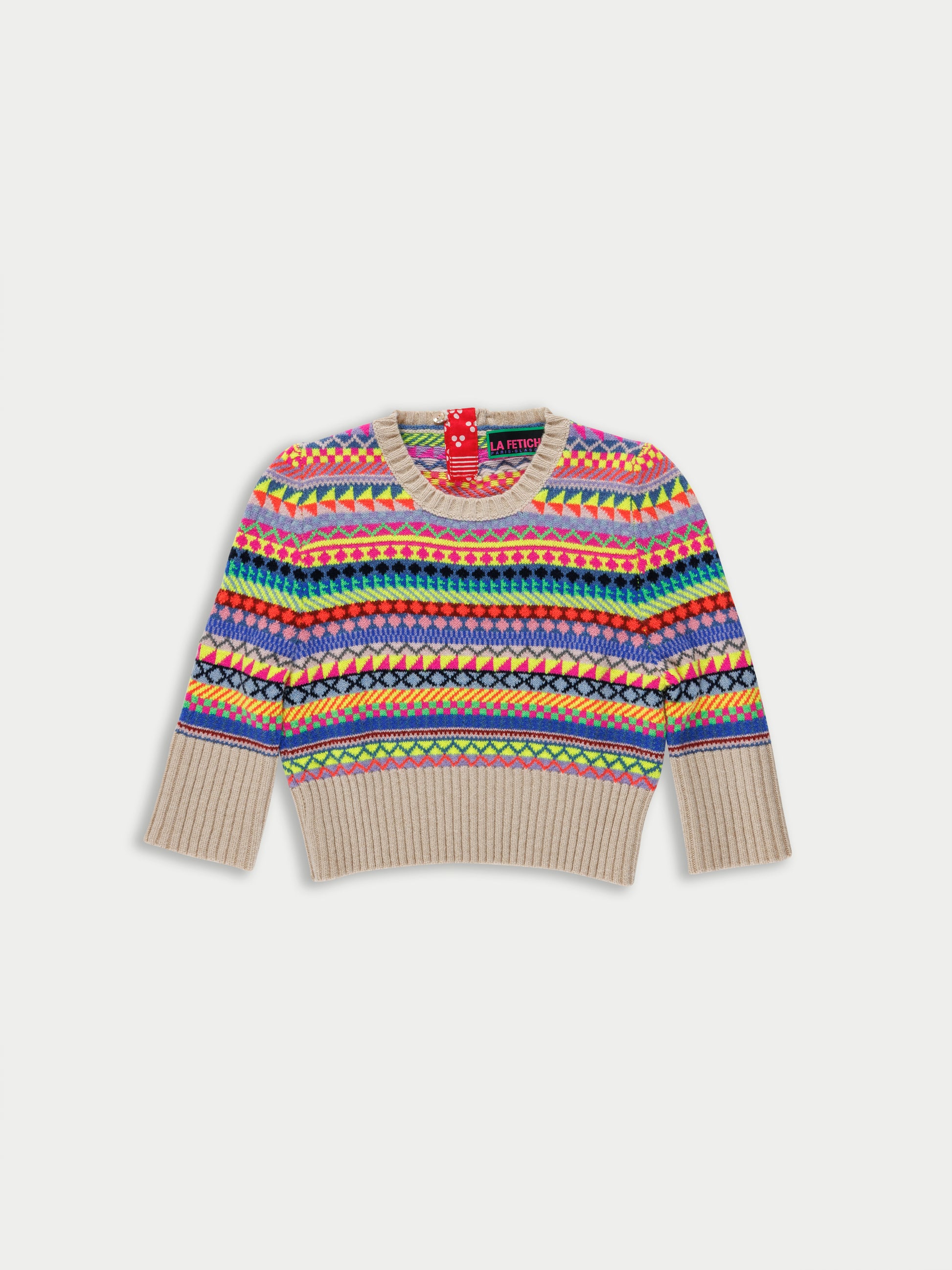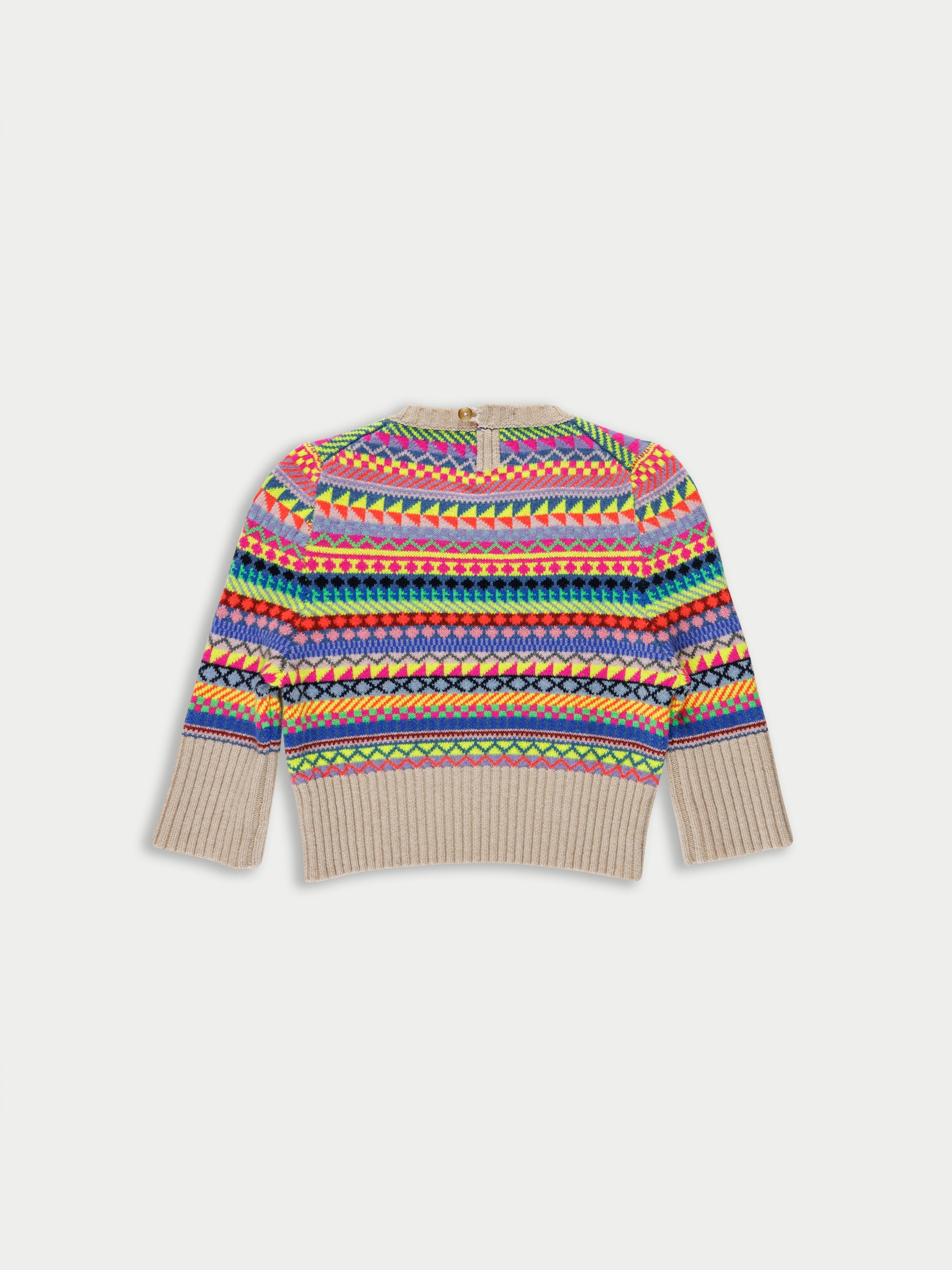 Jenny graphic fairisle 3/4 sleeve sweater with ribbed cuffs