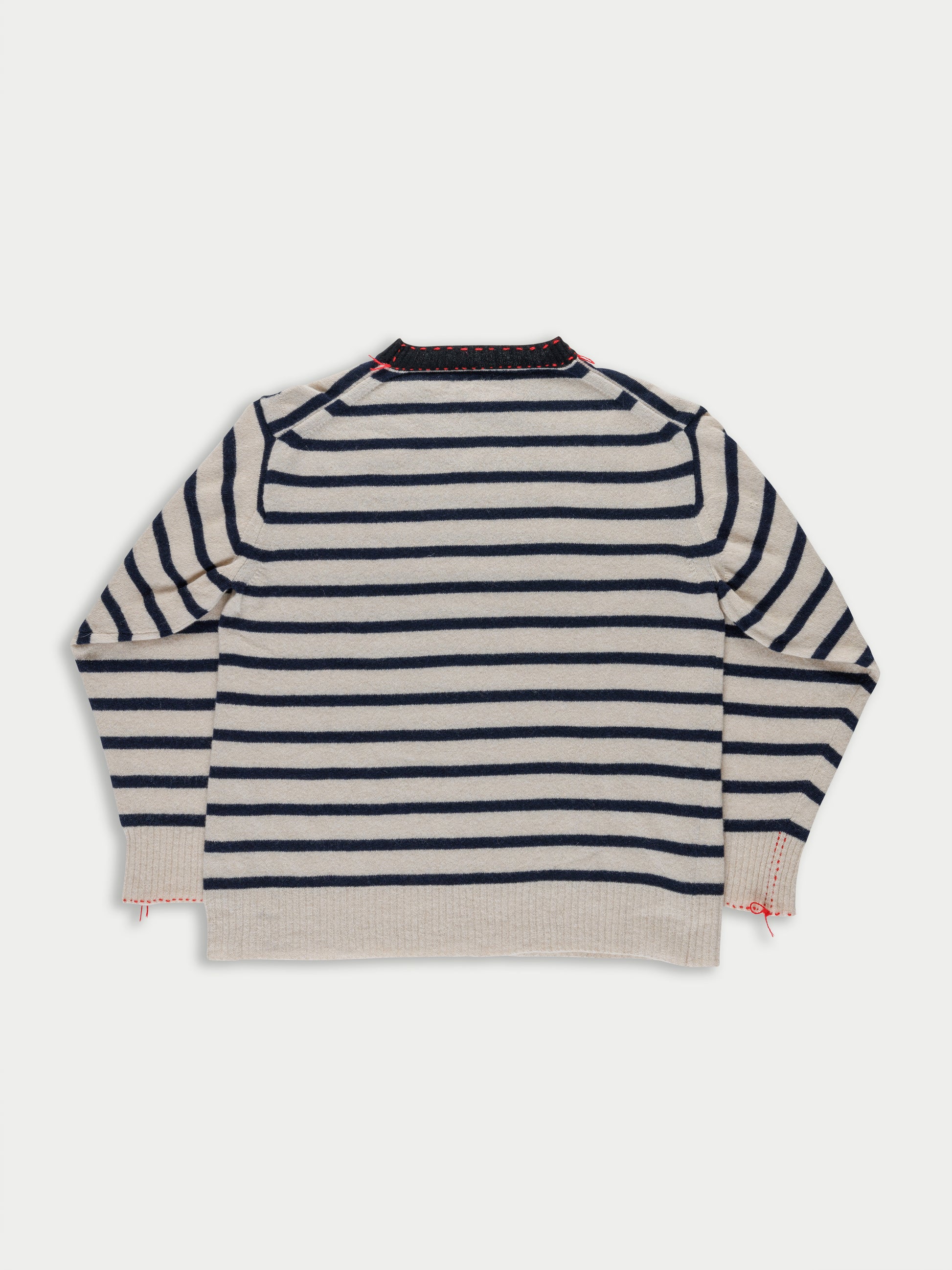 Olga striped crew neck sweater with hand-embroidered details and ‘LA FETICHE’ patched logo.