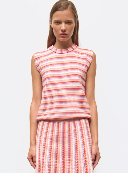 Made in France, this Molli knit top features a blend of pure extra-fine wool and mercerized cotton that gives it a delicate sheen. With its narrow stripe and mini origami stitch, it is fine and delicate. Its wide neckline guarantees an optimal comfort, while its straight, fitted cut subtly covers the shoulders.